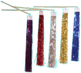 Attached to short dowelling, these come in various glittering colours, and great favourites with children. This product has been used by many people in different situations, including those working with people with learning disabilities. The varying colours can be used to great effect in visual presentations - portraying anything from running water to the stars in the heavens or the moving of the Holy Spirit. We occasionally have additional colours to those listed below - contact us for further details. |